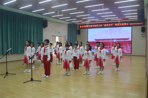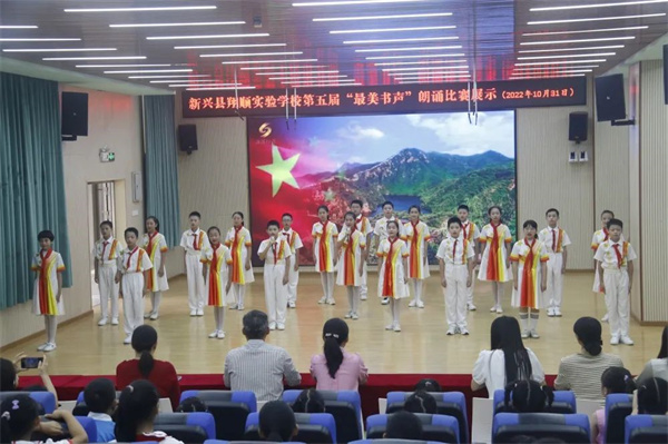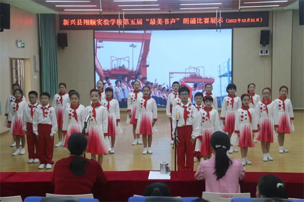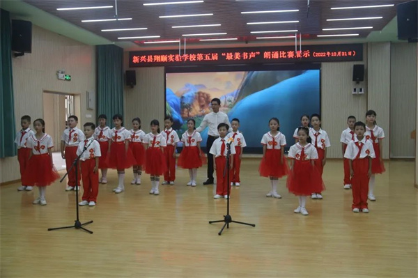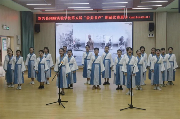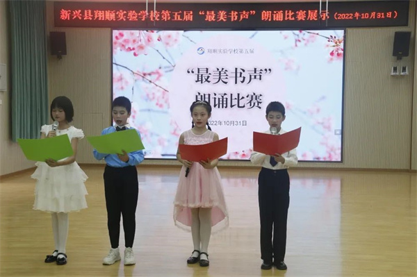为了丰富校园文化生活,营造浓郁的读书氛围,提高学生的人文素养,创建“书香校园”的品牌特色,在新兴县教育局的组织和指导下,新兴县翔顺实验学校于10月31日在电教室举行了第五届“最美书声” 朗诵比赛展示活动。