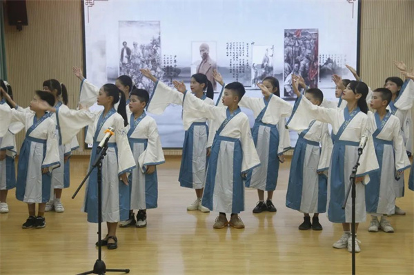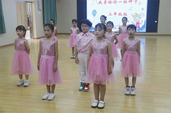 四年级的同学以丰富的情感向大家深情演绎了《新时代接班人》,体现了孩子们的雄心壮志,积极向上、不断进步定能成为祖国栋梁。