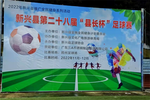 为丰富我县群众文体健身活动,推动我县全民健身活动蓬勃开展,促进我县足球运动水平不断提升。由新兴县全民健身计划委员会主办,新兴县文化广电旅游体育局协办,新兴县足球协会承办。于11月28日晚上19时,由广东三A不锈钢制品集团有限公司赞助,2022年新兴县第二十八届“县长杯”足球赛在县城筠州足球场开赛。