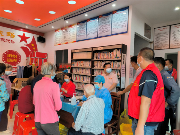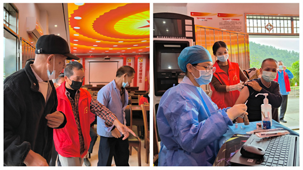 为确保适宜接种新冠疫苗的60岁以上老人应接尽接,新兴县河头镇湾中村党总支部积极联系镇卫生院,11月24日下午在湾中设置了一个新冠疫苗接种临时便民点。前来接种疫苗的高龄老人络绎不绝。在这里,湾中村网格员变身疫苗接种“服务员”,针对辖区老年群体开通疫苗接种专项服务,打通社区老年人接种新冠疫苗的“最后一公里”。