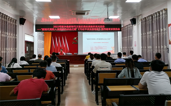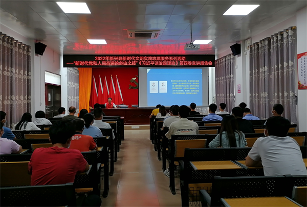新兴县用好用活新时代文明实践中心(所、站)宣传教育阵地,充分发挥新时代宣讲师、乡村讲师团和离退休党员干部等作用,用群众喜闻乐见的形式、通俗易懂的语言,扎实开展《习近平谈治国理政》第四卷宣讲活动,有效推动习近平新时代中国特色社会主义思想在新兴落地生根,掀起学习宣传强大声势。