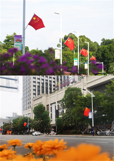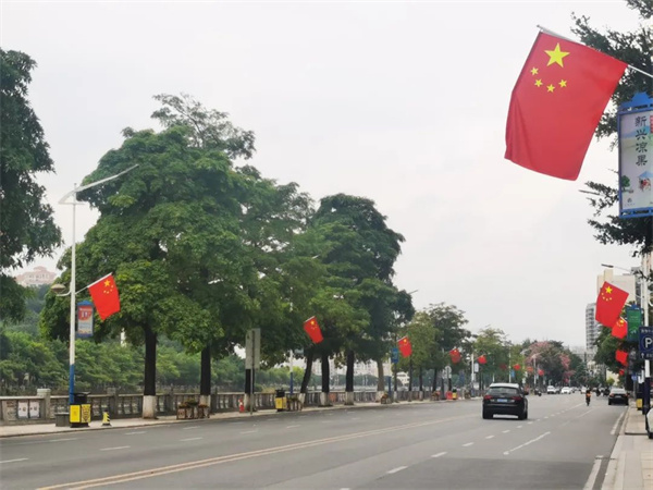 主干道上、大街小巷悬挂着鲜艳的国旗