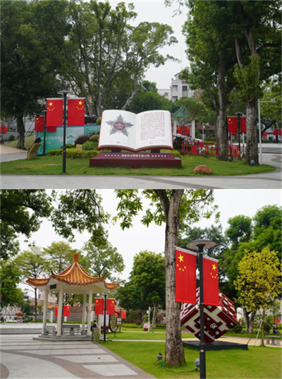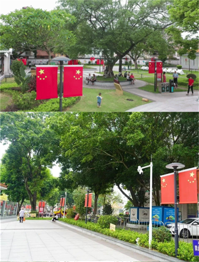被一簇簇鲜花、一片片“中国红”扮靓
