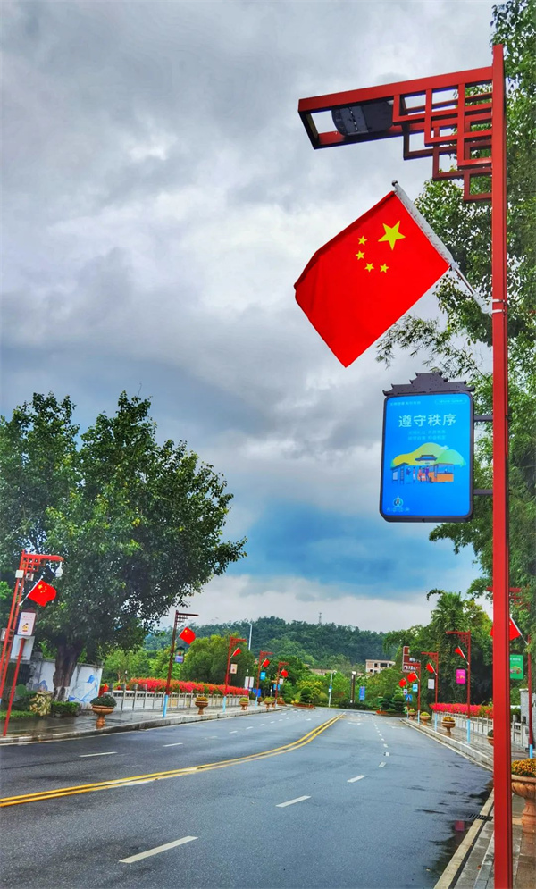 新兴街头一抹抹中国红