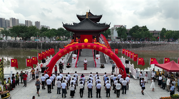 金秋十月,喜庆国庆。为充分展现新兴县新型城镇化建设和旧城活化更新工作成果,籍新中国成立73周年之际,10月1日,新兴县举行民生实事工程——文昌桥开通仪式,献礼祖国。县委书记、县长陈哲江,县人大常委会主任肖志坚、县政协主席梁国华,县委副书记、政法委书记伍树全,县委常委、统战部部长徐广志,县委常委、办公室主任、县直机关工委书记李耀强,副县长陈冠鸿参加新兴县文昌桥建成开通仪式。