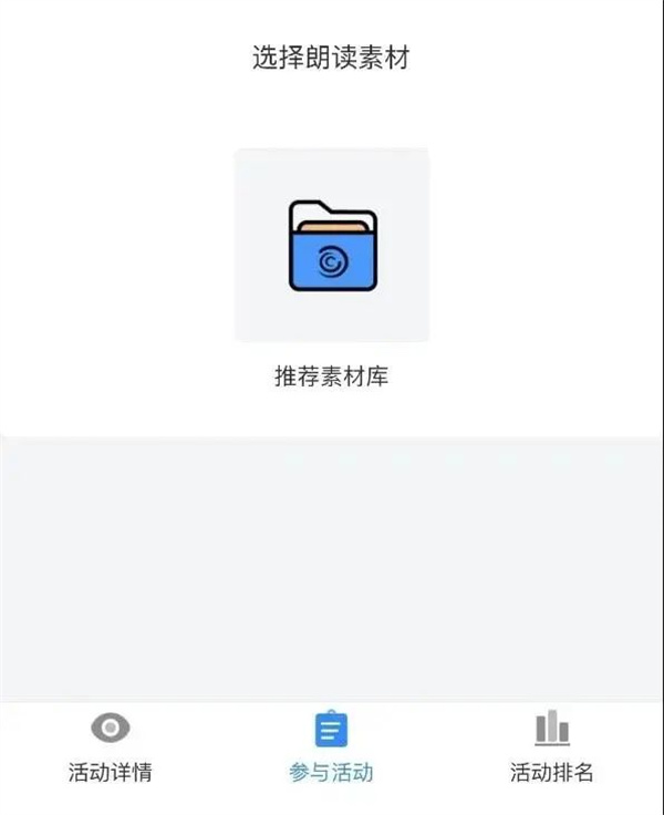 1.进入点击下方“参与活动”,从“推荐素材库”中选择素材进入到录制界面。