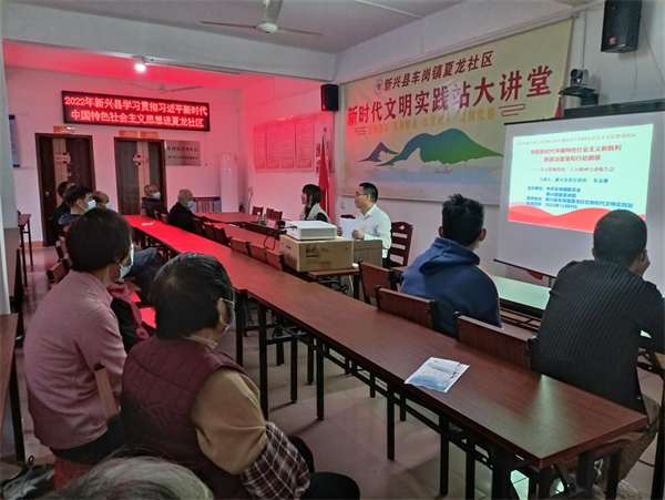 2022年12月9日,由车岗镇委员会、新兴县委宣讲团主办的新兴县学习贯彻习近平新时代中国特色社会主义思想走进车岗镇夏龙社区。县委宣讲团成员余志雄同志以“夺取新时代中国特色社会主义新胜利的政治宣言和行动纲领”为主题,为车岗镇夏龙社区的党员干部群众作了一次生动的学习贯彻党的二十大精神的专题辅导报告。