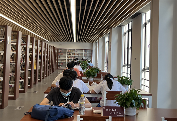 在县图书馆的阅读大厅里,前来看书、借书的市民络绎不绝。读者们分散在各个不同书架前,有的在书架里仔细地寻找自己喜欢的书籍,有的席地而坐在全神贯注的阅读书籍,大家秩序井然,馆内人数与平日有增无减。