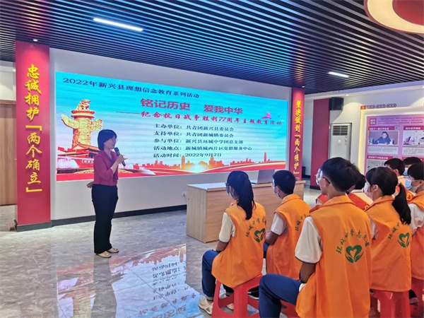 为纪念抗战胜利77周年,弘扬以爱国主义为核心的伟大民族精神,增强广大青少年学生的爱国主义情怀,9月2日下午,团新兴县委在新城镇城西片区党群服务中心举办纪念抗日战争胜利77周年主题教育活动。