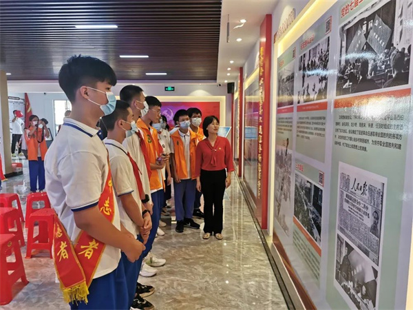 活动开始,在新兴县环城中学团员志愿者的引导下,大家参观学习了纪念抗日战争主题展览。一幅幅图片、一段段文字,深刻揭示了日本军国主义的滔天罪行,让同学们更深入了解了中国人民艰苦卓绝、波澜壮阔的抗战历史,进而确立远大理想,为祖国富强、民主复兴而奋斗。