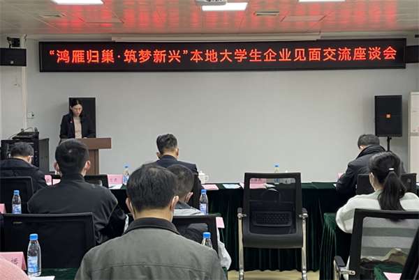 1月10日下午,由县委组织部、县人社局指导,新兴县人才驿站主办的“鸿雁归巢·筑梦新兴”本地大学生企业见面交流座谈会在县创新中心举行。活动聚焦全县经济和民生发展需求,搭建大学生与企业交流联系平台,吸引更多的人才回乡干事发展。来自武汉大学、天津大学、吉林大学、华南理工大学等知名高校的50多名大学生和11家县内知名企业代表参加活动。县委常委、组织部部长冯海燕出席座谈会。