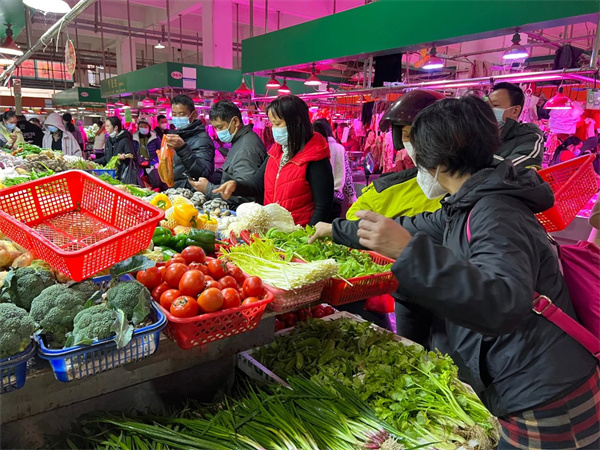 在城北市场,记者看到,摊位上的蔬菜、水产、肉禽蛋、熟食、副食品等分区鲜明,色彩丰富的菜品在灯光照射下愈发诱人,每个摊位前都站满了精心选购食材的市民,大家手里拿着大包、小包的各类菜肴,呈现出一派购销两旺的热闹场景,生菜、鱼等寓意着好兆头的食材备受市民青睐,市场也弥漫起浓浓的“年味”。随着疫情防控政策的不断优化,春节返新人员增多,不少市民选择在家烹饪丰盛年夜饭招呼亲朋戚友。
