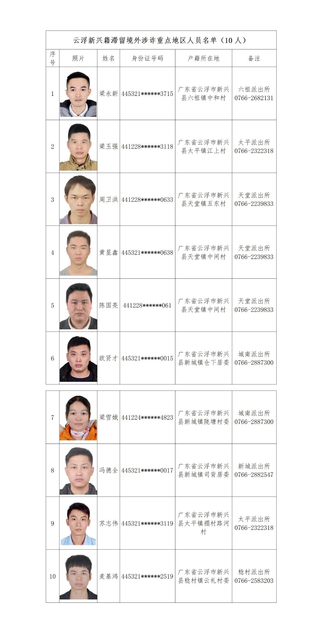云浮新兴籍滞留境外涉诈重点地区人员名单