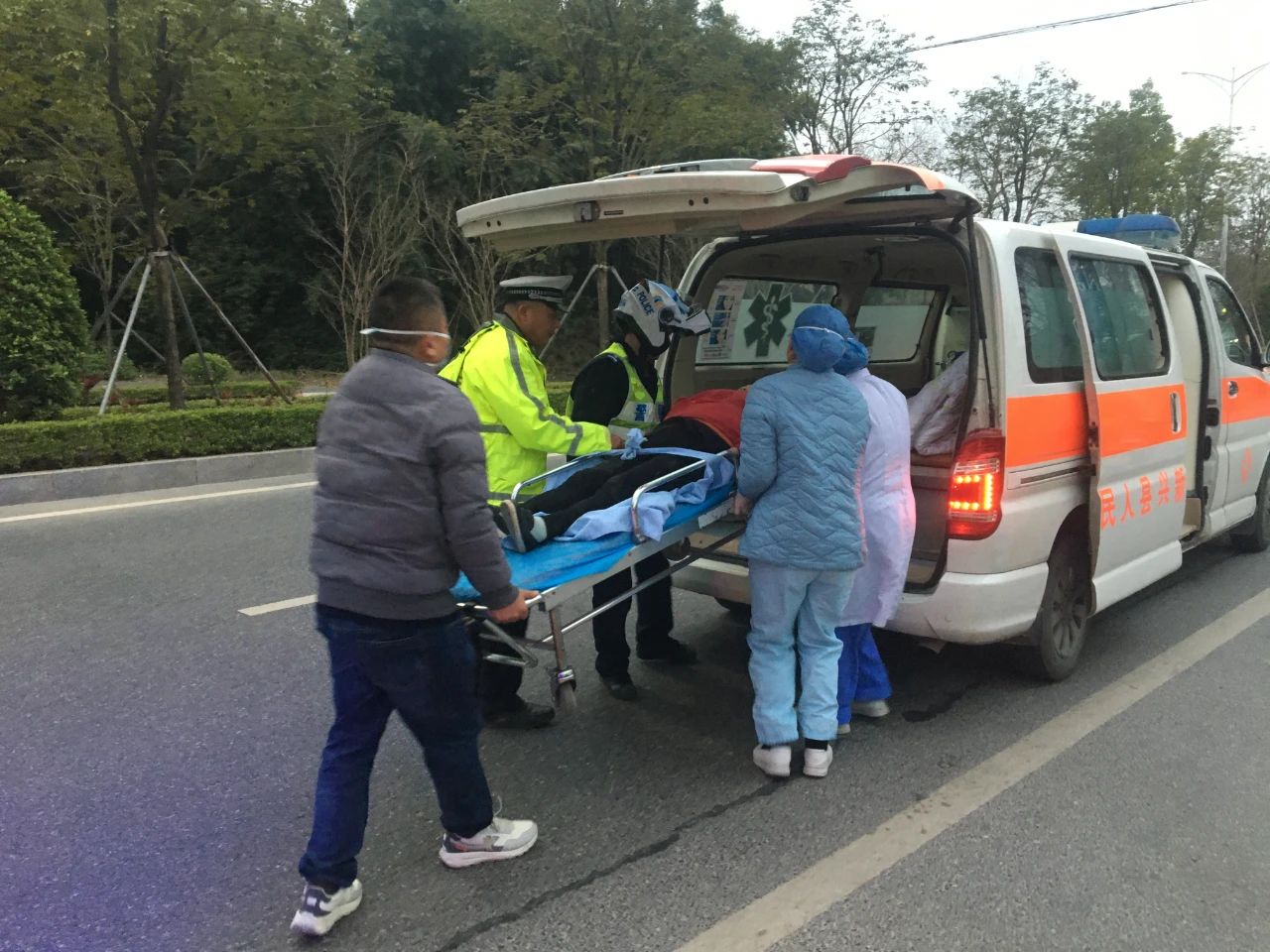 大年初五傍晚,交警巡逻至六祖大道上印村路段,发现一辆倒地摩托车和一名伤者,经了解,该名伤者驾驶摩托车自行跌倒致其本人受伤,民警立刻联系120将伤者及时送院救治。