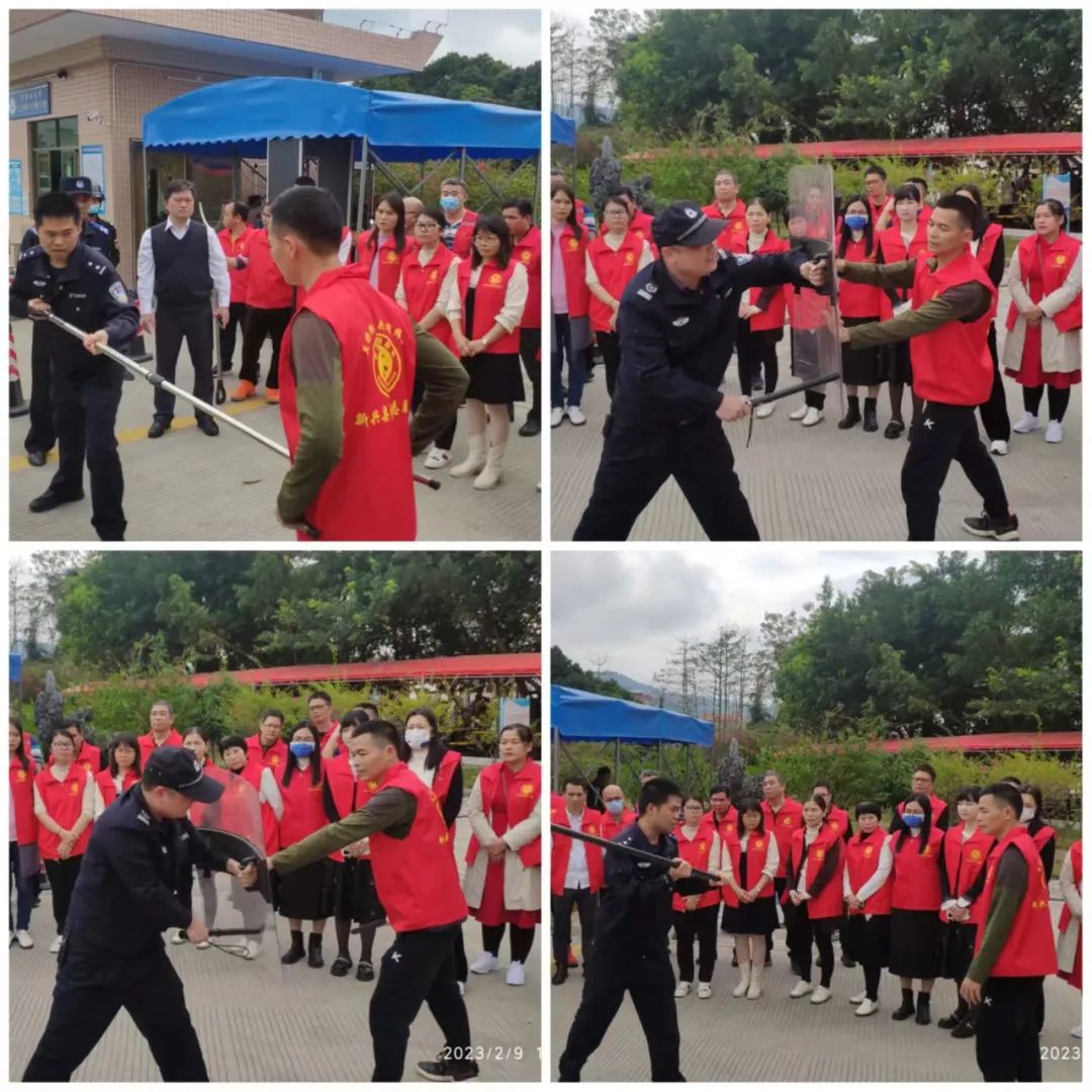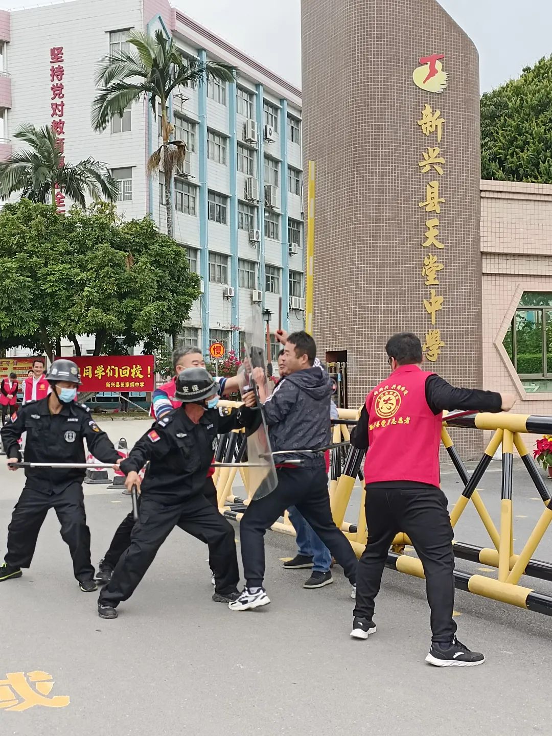为贯彻落实省、市、县安全工作的有关精神,进一步提升全校师生的安全防范意识和能力,维护校园和谐稳定,保障师生人身和财产安全,保证师生在危险来临时能够安全、高效、有序疏散避险,最大程度地降低损失,新兴县田家炳中学与天堂镇派出所于2023年2月9日开展了最小应急单元模拟场景演练。