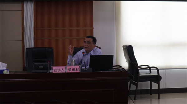 宣讲报告会上,梁道乾以《紧跟总书记 奋进新征程》为题,围绕为什么学、学什么、做什么,用生动的语言深入浅出、通俗易懂地宣讲了《习近平谈治国理政》第四卷的核心要义、丰富内涵和实践要求,为我们作了一场精彩的报告。