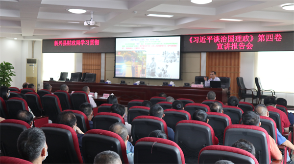为深入学习《习近平谈治国理政》第四卷,进一步增强学习贯彻的思想自觉、政治自觉、行动自觉,准确把握党的新理念、新思想,切实把学习成果转化为奋进新征程、建功新时代的工作举措和实际成效,10月19日下午,新兴县财政局在局九楼会议室举办学习贯彻《习近平谈治国理政》第四卷宣讲报告会。会议邀请到县委宣讲团成员、县信访局主任科员、讲师梁道乾同志作专题宣讲报告,由局党组书记、局长邓均效主持,县财政局全体干部职工参加。