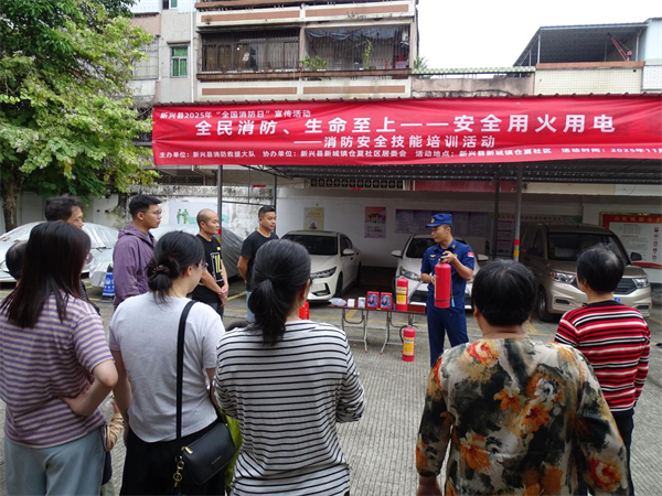 在全国第34个“119”消防日来临之际,为切实筑牢社区消防安全防线,提升居民应急避险能力,2025年11月9日上午,新兴县消防救援大队联合县应急管理局在新兴县新城镇仓夏社区开展“全民消防、生命至上——安全用火用电”主题消防安全技能培训活动。活动现场人头攒动、氛围热烈,吸引了社区居民踊跃参与。