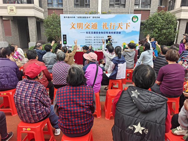 为切实提升社区居民的交通安全意识和文明素养,营造122“全国交通安全日”浓厚宣传氛围,2025年12月2日,新兴县公安局组织民警深入县城南社区(翔顺筠州小镇),围绕“文明交通 礼行天下”主题,开展了一场形式多样、内容丰富的交通安全宣传活动,将交通安全知识送到居民家门口。
