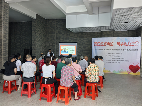 为弘扬无私奉献的献血精神,提高群众对无偿献血的认知和参与度,2025年6月14日,新兴县卫生健康局联合县人民医院到县城南社区(翔顺筠州华府)开展“献血传递希望 携手挽救生命”——2025年新兴县世界献血者日健康科普及义诊活动。活动通过科普宣传、现场义诊相结合的形式,将无偿献血宣传与多学科医疗服务深度融合,切实把为群众办实事落到实处。