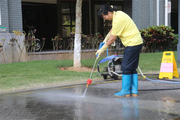 使用工具、器械冲洗地面污迹