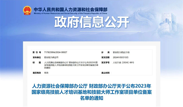 国家级高技能人才培训基地建设工作是深入贯彻落实中共中央、国务院《关于加强新时代高技能人才队伍建设的意见》和培养造就更多高技能人才、能工巧匠、大国工匠的一项重要举措。