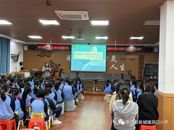 女生专场由党支部书记、洞口小学校长苏齐益主讲,主题为:笑迎花季,做最美的女孩。