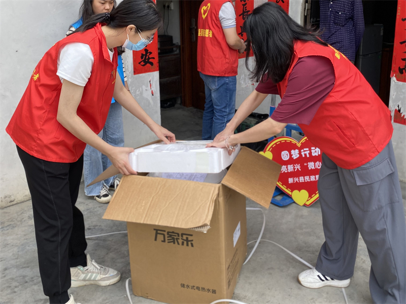 祝叔62岁,是一位身体羸弱、长期与药为伴的老人,身体弱长期需吃药,养女的远嫁让他在经济上更加捉襟见肘,甚至日常洗澡还需依靠传统的柴火。面对这样的困境,志愿者们没有袖手旁观,他们通过网络公益活动,为祝叔安装了一台热水器,彻底结束了祝叔上山拾柴的艰辛,照亮了他晚年的生活。