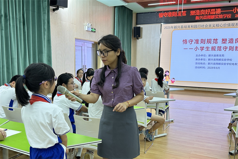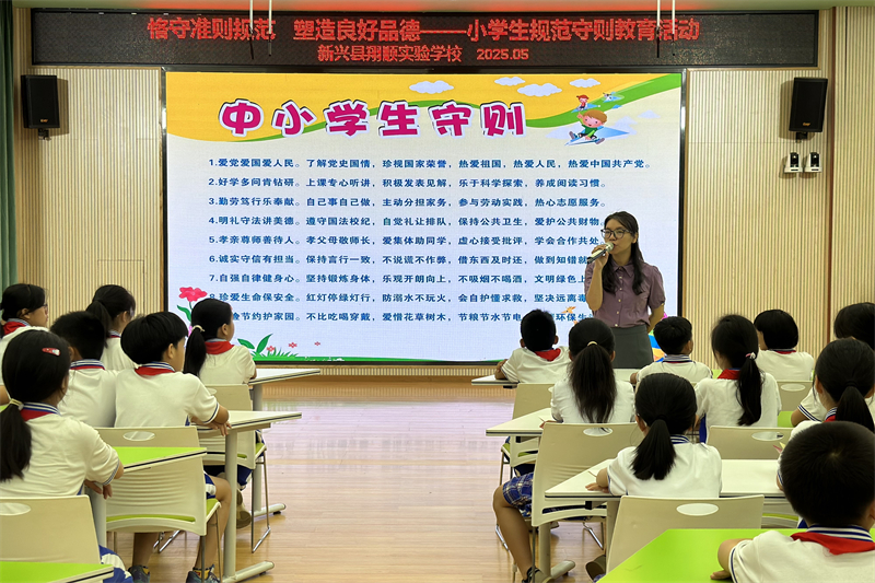 为积极培育和践行社会主义核心价值观,将价值引领融入学生日常行为养成,2025年5月22日,由新兴县教育局主办、新兴县翔顺实验学校承办的“恪守准则规范 塑造良好品德——小学生规范守则教育活动”,在学校电教室顺利开展。