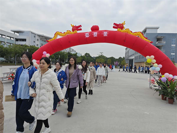在激昂的音乐声中,学子们昂首挺胸走过“成人门”,踏上象征责任与梦想的新征程,将现场氛围推向高潮。