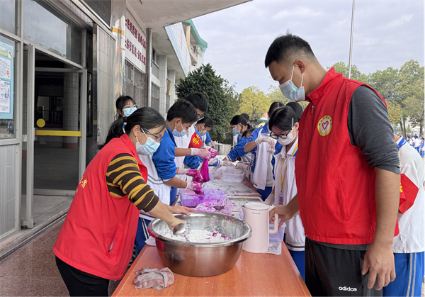 冬至阳生,岁暖人心。为传承中华优秀传统节日文化,培育青少年志愿服务精神,深化校园精神文明建设与德育工作融合,12月19日,团新兴县委在县环城中学组织开展“冬至暖人心 汤圆传善意”志愿服务活动。活动以义卖形式开展,全校师生积极参与,用热气腾腾的汤圆传递温情,用点滴善举汇聚爱心暖流。