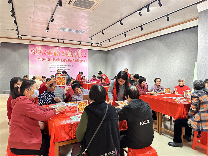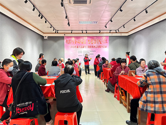银龄巧手贴福韵 志愿温情暖元旦——新兴县开展新年主题粘贴画