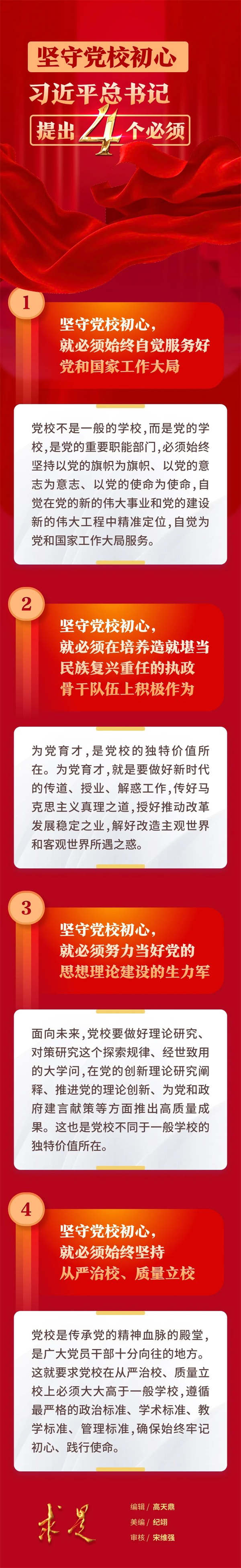 在2023年第7期《求是》杂志刊发的习近平总书记重要文章《在中央党校建校90周年庆祝大会暨2023年春季学期开学典礼上的讲话》中,总书记深刻指出:“回顾历史,党校始终不变的初心就是为党育才、为党献策”;“党校初心始终是党校不断奋斗的根本动力,也是党校事业不断发展的根本遵循”。如何坚守党校初心,总书记提出“四个必须”的重大要求。
