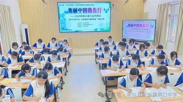 “青山不语花含笑,碧水无声鸟作歌。”为增强同学们对环境保护的责任感与使命感,为建设美丽中国、守护地球家园贡献力量,提升环保意识。2025年6月4日,新兴县教育局联合新兴县新城镇洞口中学在学校的录播室开展了一场以“美丽中国我先行”为主题的“践行环保行动 共绘美丽中国新画卷”绘画比赛,学生们以画笔为舟,驶向生态文明的理想彼岸。