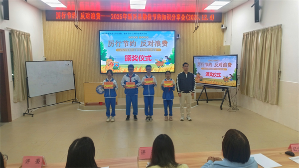 号召师生从思想上增强风险意识,在行动上养成良好用餐习惯,从小事做起,共同践行勤俭节约,传承中华美德。分享会尾声举行了隆重的颁奖仪式,旨在表彰在活动中积极分享勤俭节约知识的积极份子,进一步激发全校参与“反对浪费”的积极性。“表彰不是终点,而是新的起点。希望获奖代表能带动更多人将‘厉行节约’融入日常,让节约成为校园最美的风尚。”