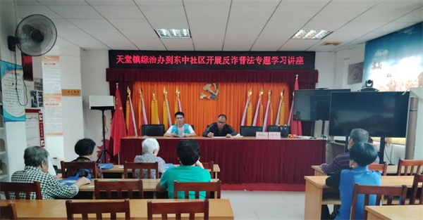 为推进天堂镇反诈工作走深走实,切实维护人民群众财产安全,近日,新兴县天堂镇人民政府组织镇综治办、司法所到东中社区开展反诈普法专题学习讲座。