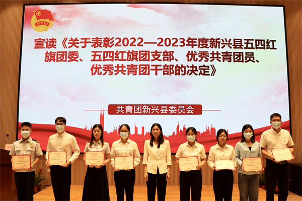 团县委向参会人员传达学习习近平总书记视察广东重要讲话重要指示精神;宣读了《关于表彰2022—2023年度新兴县五四红旗团委、五四红旗团支部、优秀共青团员、优秀共青团干部的决定》。冯海燕为获奖的先进个人代表和先进集体代表颁奖。