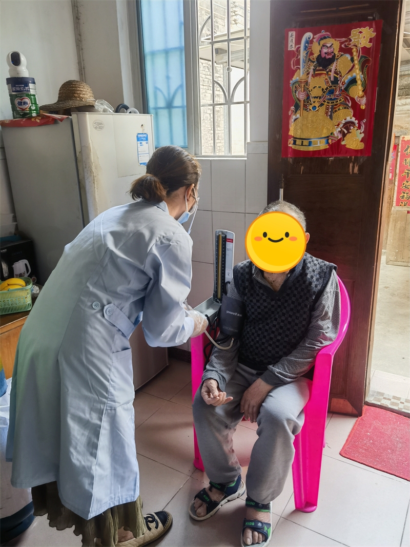 新城镇家庭医生团队在驻村党员干部的引领下来到司背村患有高血压病的陈老伯家里,为其测量血压、中医体质辨识,指导用药和日常健康保健。家庭医生上门开展慢性病健康随访,受到陈老伯的点赞。