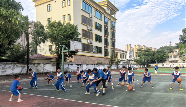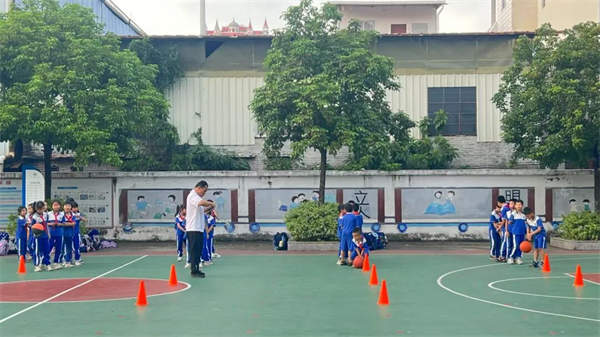 篮球场上,教练正循序渐进地指导学生掌握篮球基本技能。从规范运球姿势到精准传球技巧,再到基础投篮动作的矫正,每一个教学环节都细致入微。学生们认真投入,反复练习每一个动作。汗水浸湿了衣衫,却丝毫未减他们的热情,每一次成功的运球、传球与投篮,都展现出他们的努力与坚持,也让团队协作意识在实践中不断增强。