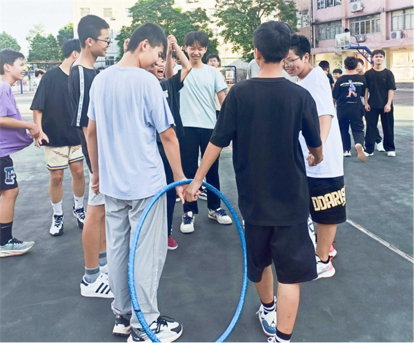 理论学习之后,“同心协力”户外心理团辅课程紧接着分批次覆盖七、八年级。八年级的“桃花朵朵开”“一圈到底”等协作项目考验着团队默契,七年级声势浩大的拔河比赛则凝聚着班级向心力。操场上不绝于耳的加油呐喊声,不仅是青春活力的释放,更是心理压力的有效宣泄,学生们在运动中真切感受到团队支持的力量。