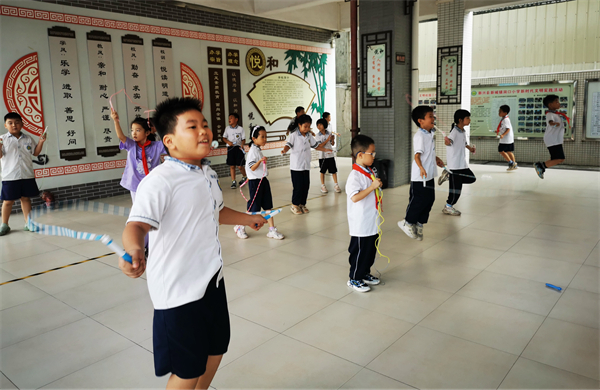 跳绳场地内,一根根彩绳在空中划出优美的弧线。随着节奏加快,大家脚步轻快,汗水浸湿了衣衫,却依然笑容满面。跳绳运动不仅增强了同学们的心肺功能和耐力,更让大家在协作中收获了友谊与成就感。