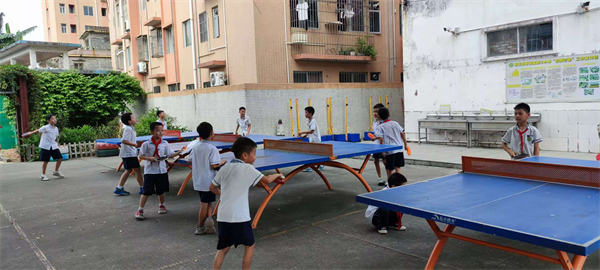 乒乓球桌旁热闹非凡,小小银球在球网间来回跃动。同学们手握球拍,眼神专注,清脆的击球声此起彼伏。大家在攻防转换中感受运动的乐趣,在反复练习中提升技术水平,展现了顽强拼搏、永不言弃的体育精神。