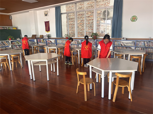 图书馆与班级图书吧内,小志愿者们化身“图书管理员”,分工协作整理书架。他们仔细将散落的书籍分类归位,用抹布轻轻擦拭书架灰尘,为同学们营造了整洁有序的阅读环境。指尖划过书籍的瞬间,不仅传递着对知识的敬畏,更彰显着志愿服务的担当。