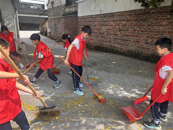 “弯腰拾垃圾,动手护环境”,小志愿者们手持扫帚、垃圾袋等工具,对校园道路、绿化带、操场等区域进行全面清扫。经过大家的努力,校园环境焕然一新,充分展现了新时代少年爱护环境、乐于奉献的良好风貌。