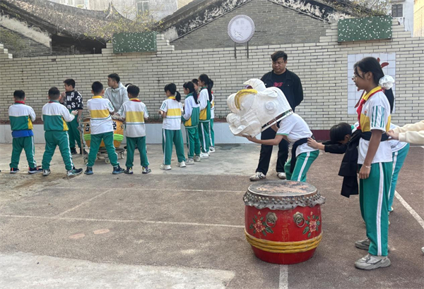 醒狮队将传统民俗与体育锻炼深度融合。学校聘请专业醒狮教练进校授课,从扎马步、基本功训练,到狮头操控、队形编排,一步步带领学生感受醒狮文化的魅力;醒狮队不仅在校运会、校园文化节上亮相,还参与县体育活动展演,让学生在传承非遗的同时,锤炼了意志力与集体荣誉感。