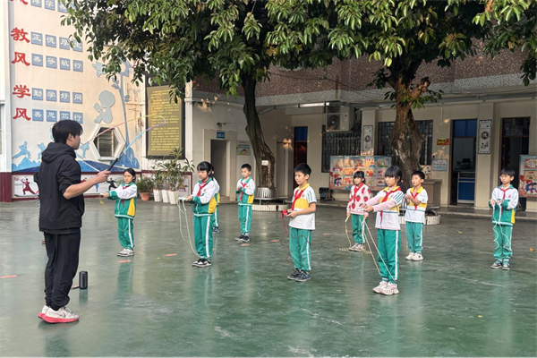 跳绳运动凭借易开展、强体能的优势,成为全校普及的运动项目。结合趣味跳绳操融入大课间,一根小小的跳绳,让每个学生都能参与其中,在跳跃中增强心肺功能,释放青春活力。